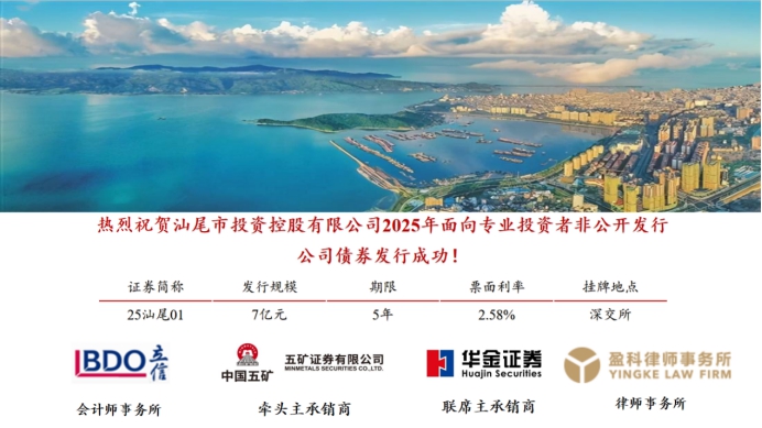 熱烈祝賀汕尾市投資控股有限公司2025年非公開發(fā)行公司債成功發(fā)行!